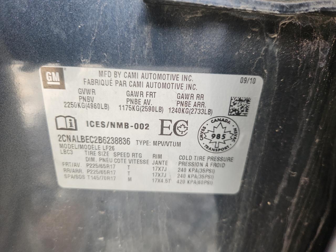 2011 CHEVROLET EQUINOX LS - 2CNALBEC2B6238836