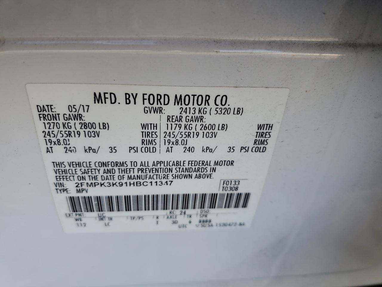 2017 FORD EDGE TITAN - 2FMPK3K91HBC11347
