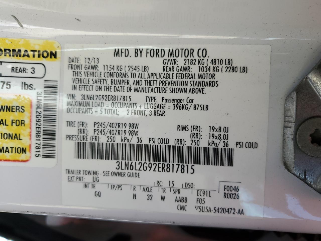 2014 LINCOLN MKZ - 3LN6L2G92ER817815