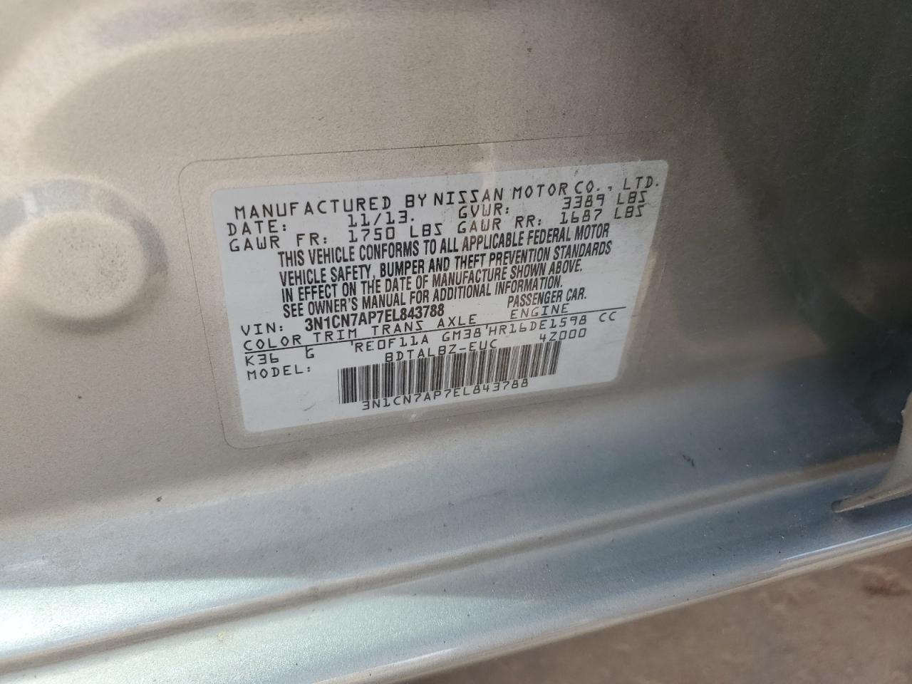 2014 NISSAN VERSA S - 3N1CN7AP7EL843788