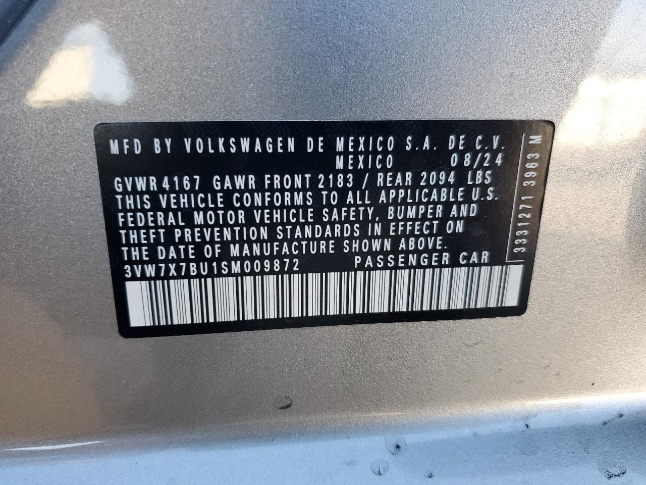 3VW7X7BU1SM009872