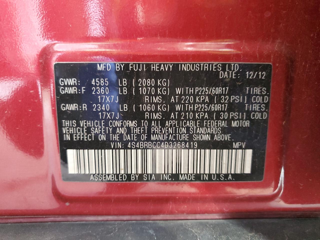 2013 SUBARU OUTBACK 2. - 4S4BRBCC4D3268419