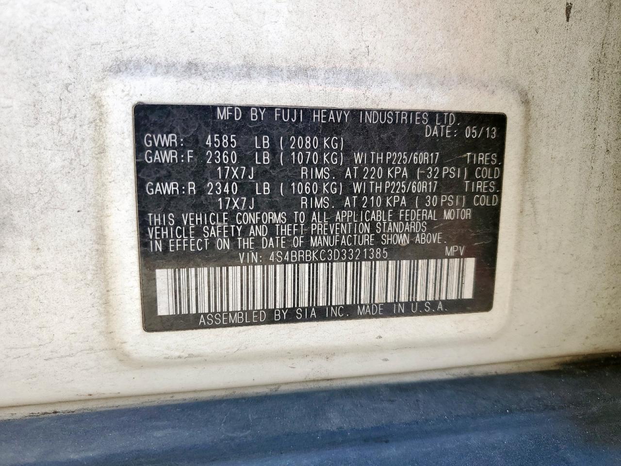 2013 SUBARU OUTBACK 2. - 4S4BRBKC3D3321385