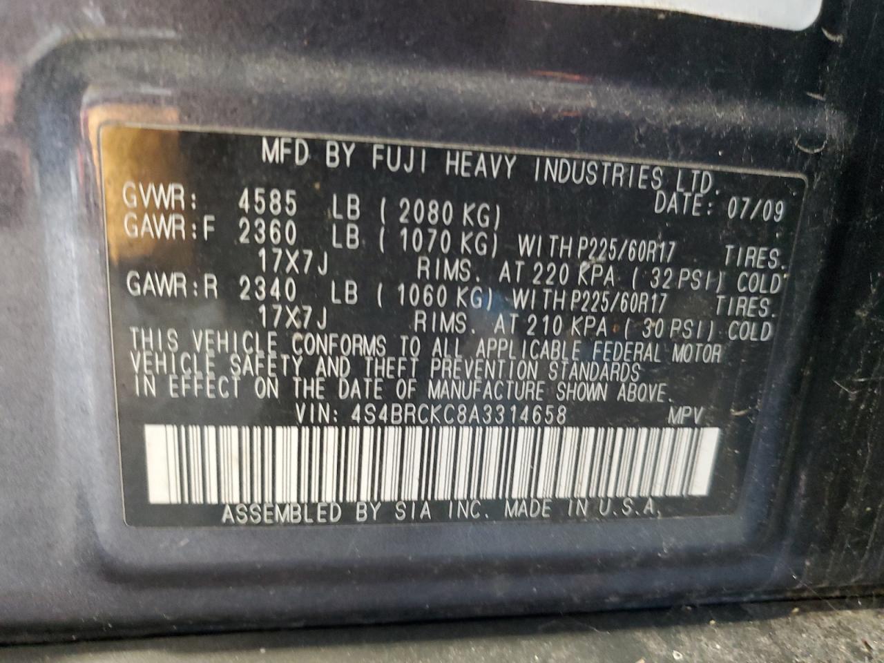 2010 SUBARU OUTBACK 2. - 4S4BRCKC8A3314658
