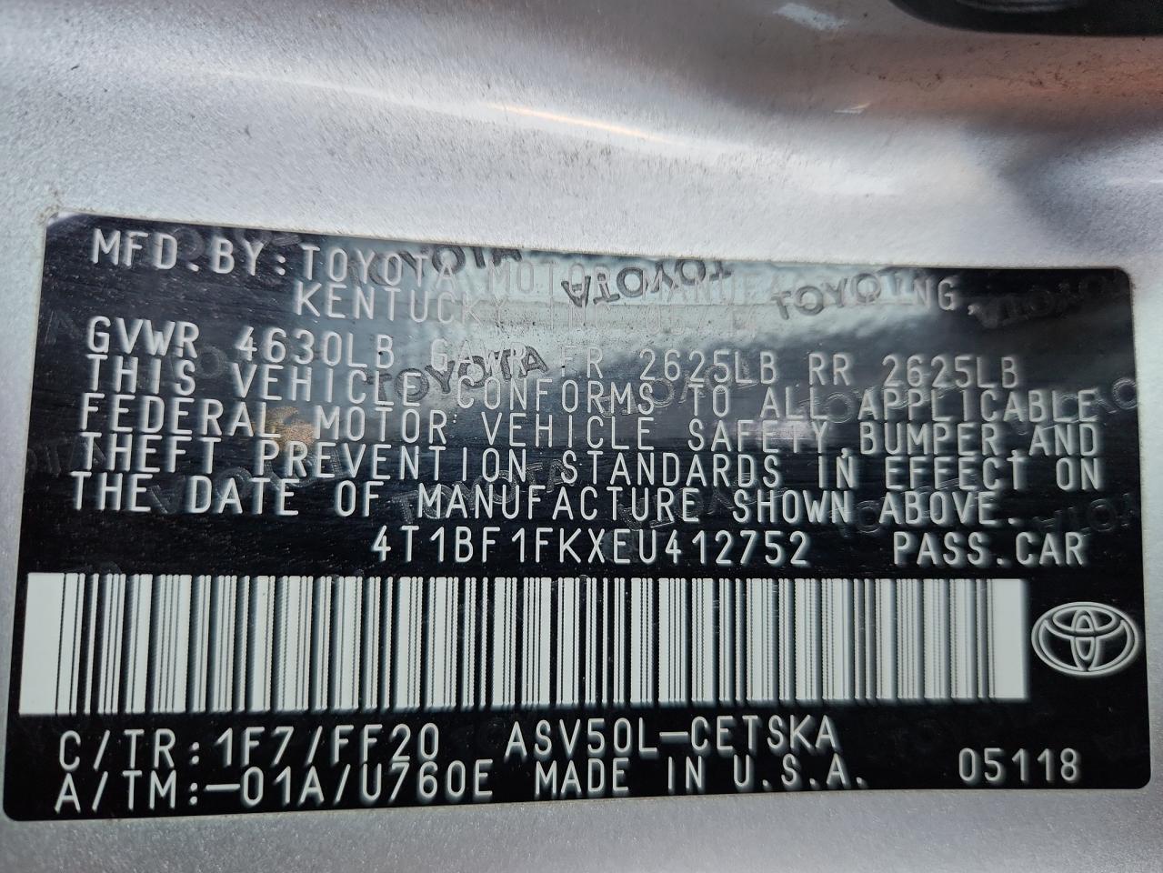 4T1BF1FKXEU412752