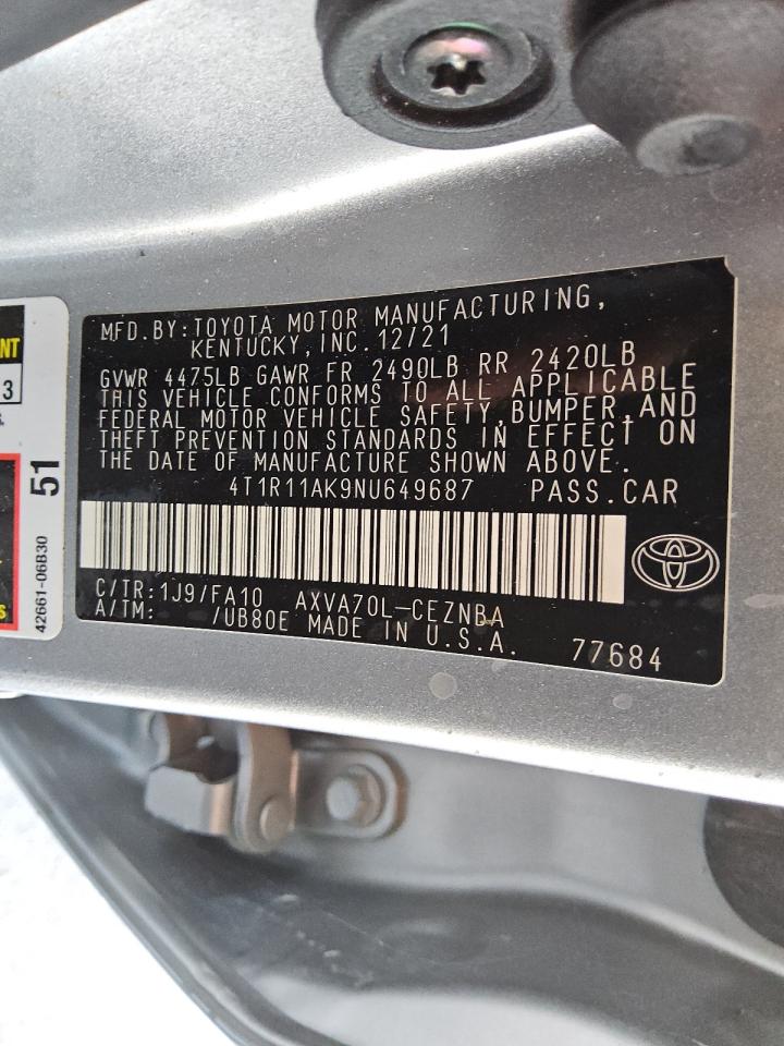 2022 TOYOTA CAMRY LE - 4T1R11AK9NU649687