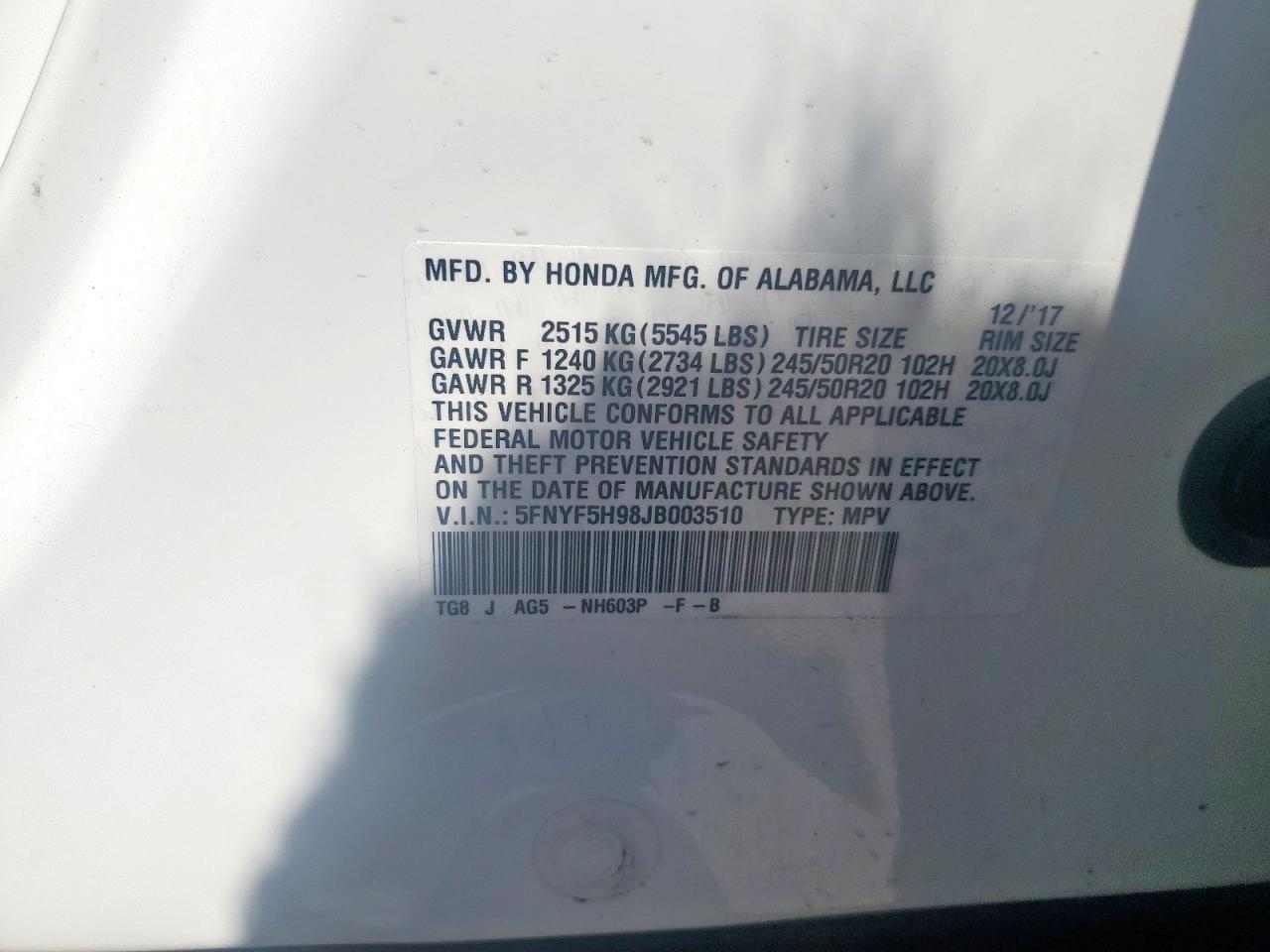 5FNYF5H98JB003510