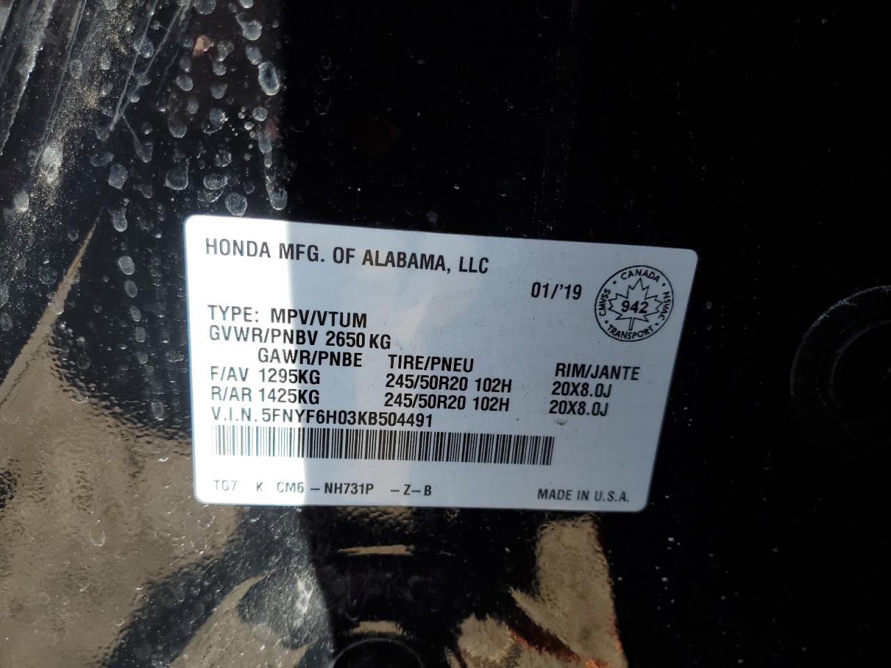 5FNYF6H03KB504491