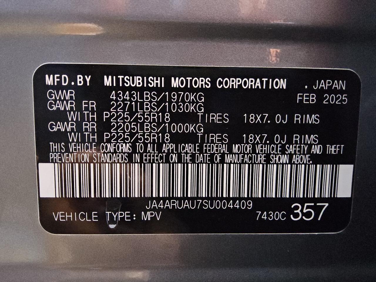 2025 MITSUBISHI OUTLANDER - JA4ARUAU7SU004409
