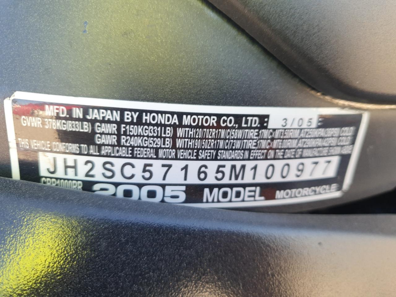2005 HONDA CBR1000 RR - JH2SC57165M100977