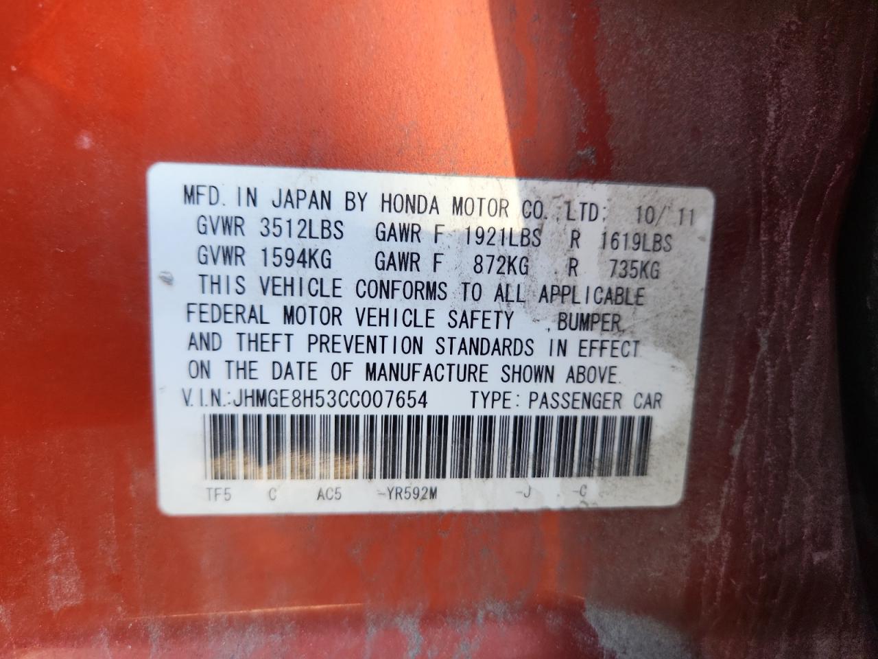 JHMGE8H53CC007654