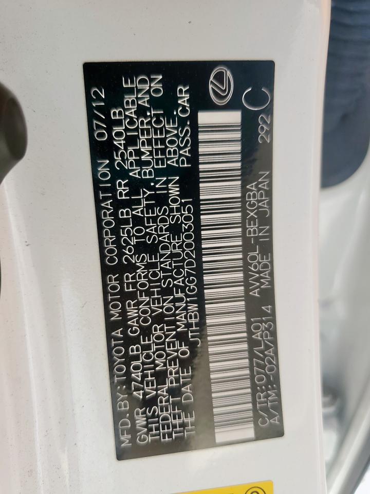 2013 LEXUS ES 300H - JTHBW1GG7D2003051