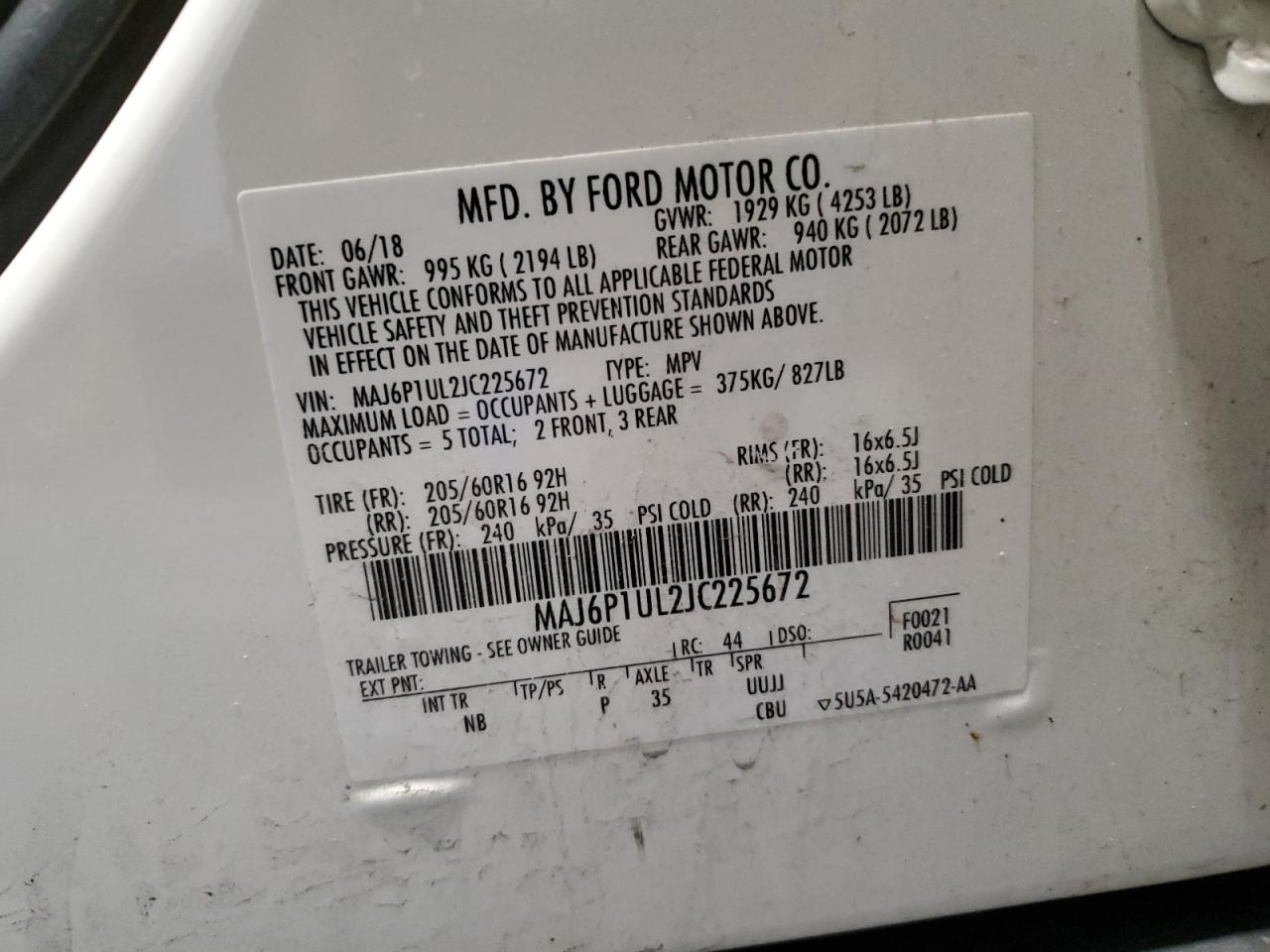 2018 FORD ECOSPORT S - MAJ6P1UL2JC225672