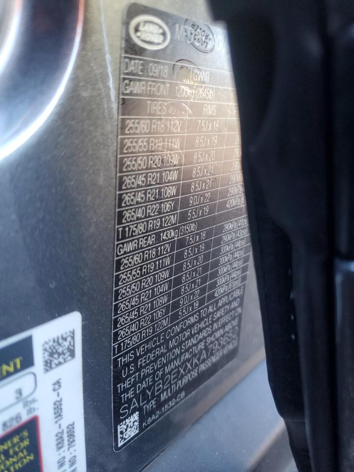 2019 LAND ROVER RANGE ROVE - SALYB2EXXKA793652