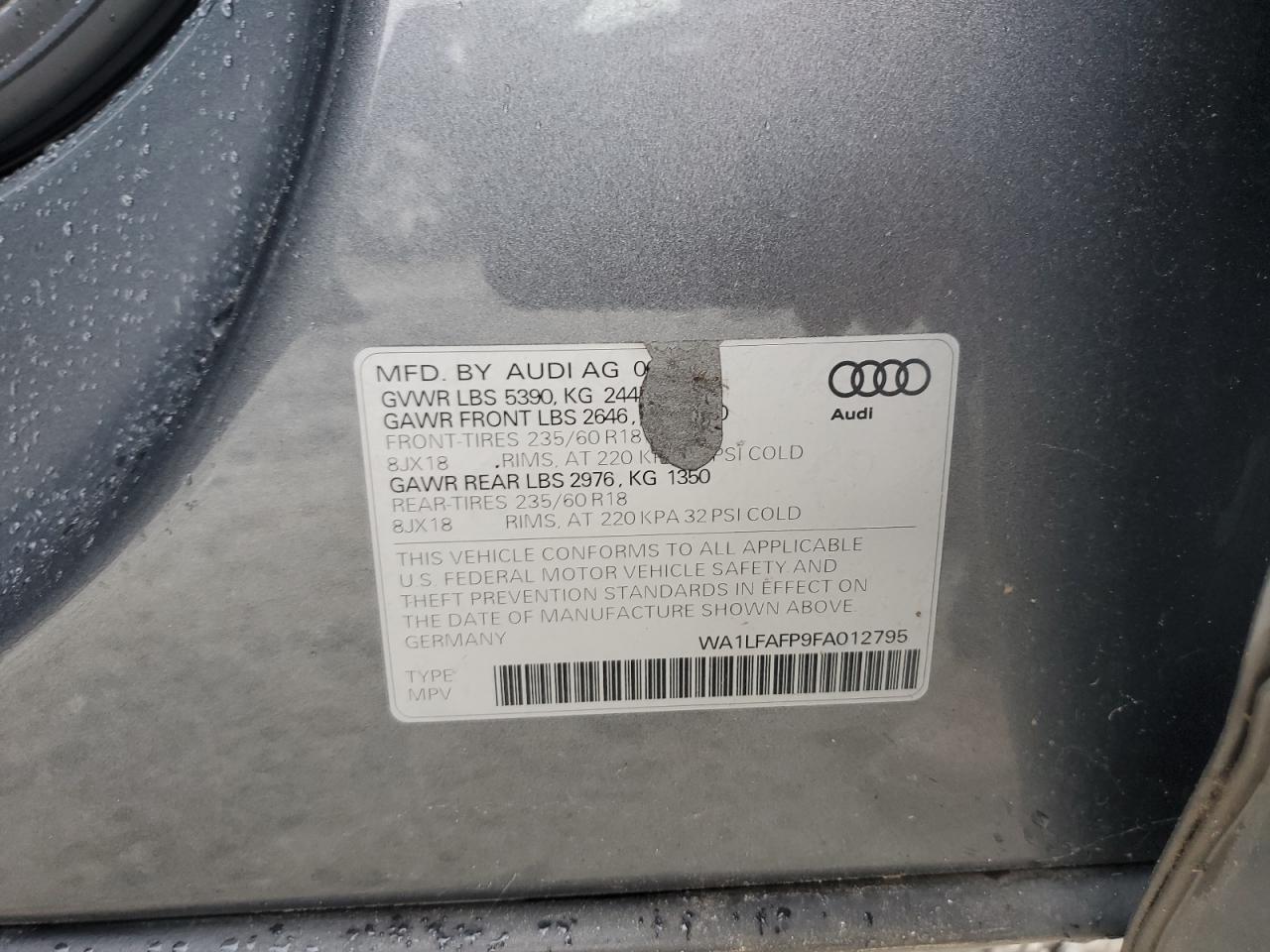 2015 AUDI Q5 PREMIUM - WA1LFAFP9FA012795
