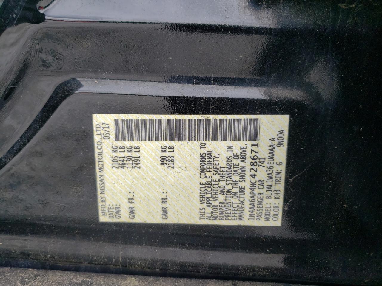 2017 NISSAN MAXIMA 3.5 - 1N4AA6AP4HC428671