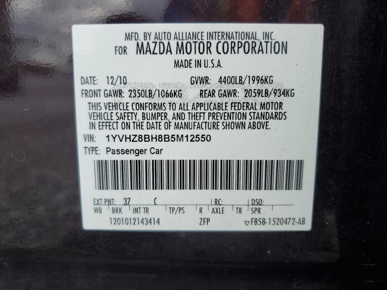 2011 MAZDA 6 I - 1YVHZ8BH8B5M12550