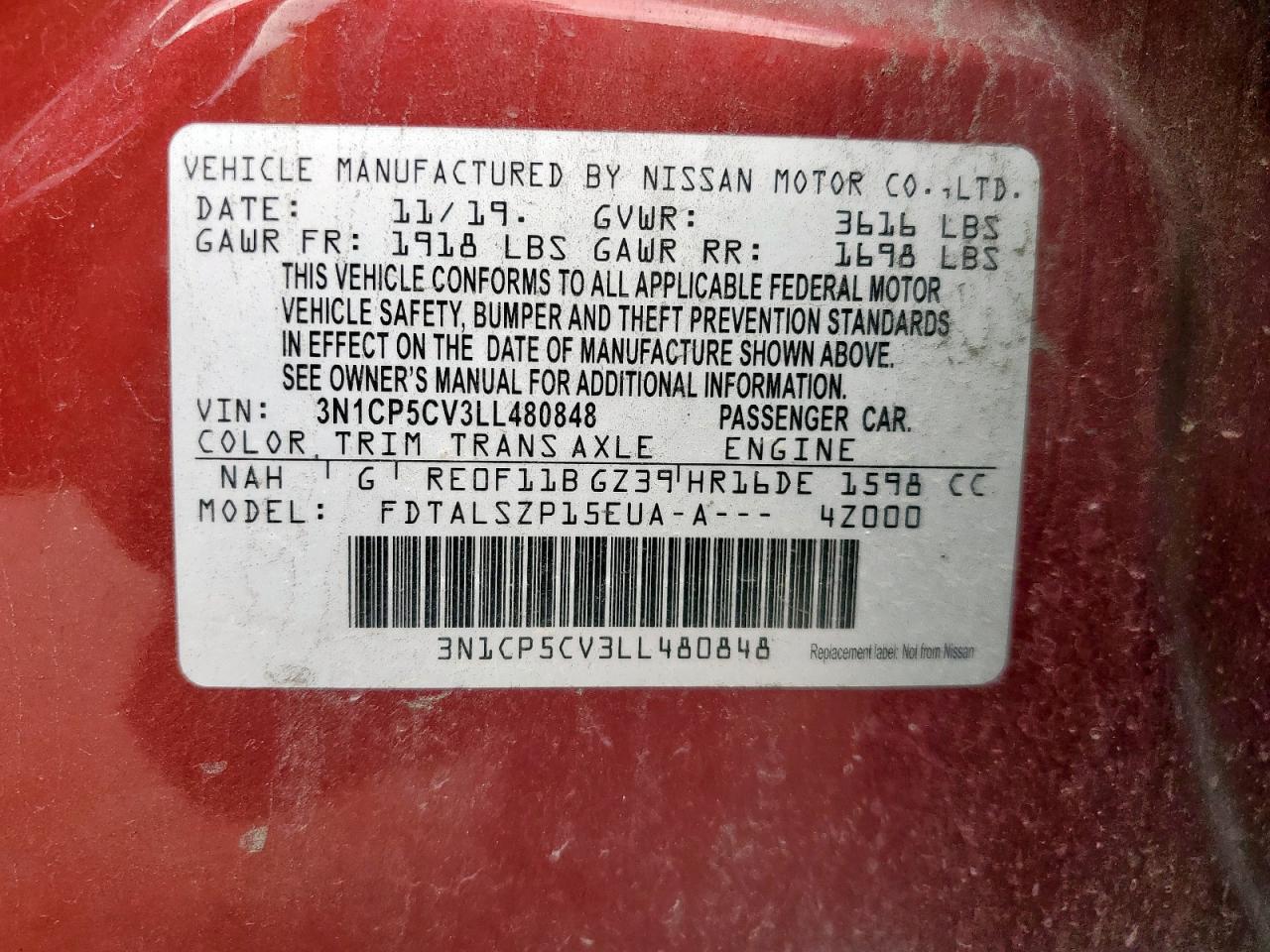 2020 NISSAN KICKS SV - 3N1CP5CV3LL480848