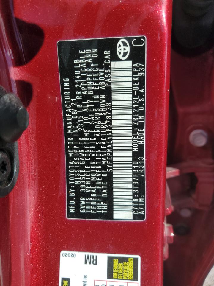 2022 TOYOTA COROLLA LE - 5YFEPMAE4NP278738