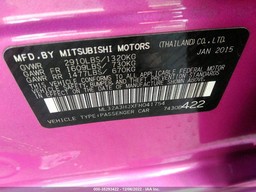 Об этом 2015 MITSUBISHI MIRAGE DE/RF