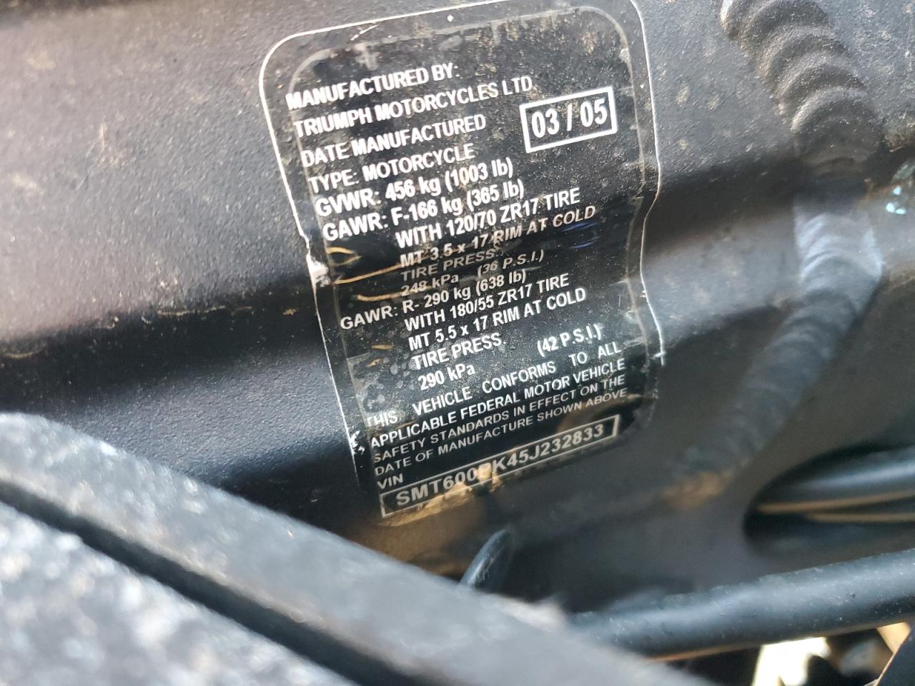 2005 TRIUMPH MOTORCYCLE SPRINT ST - SMT600PK45J232833