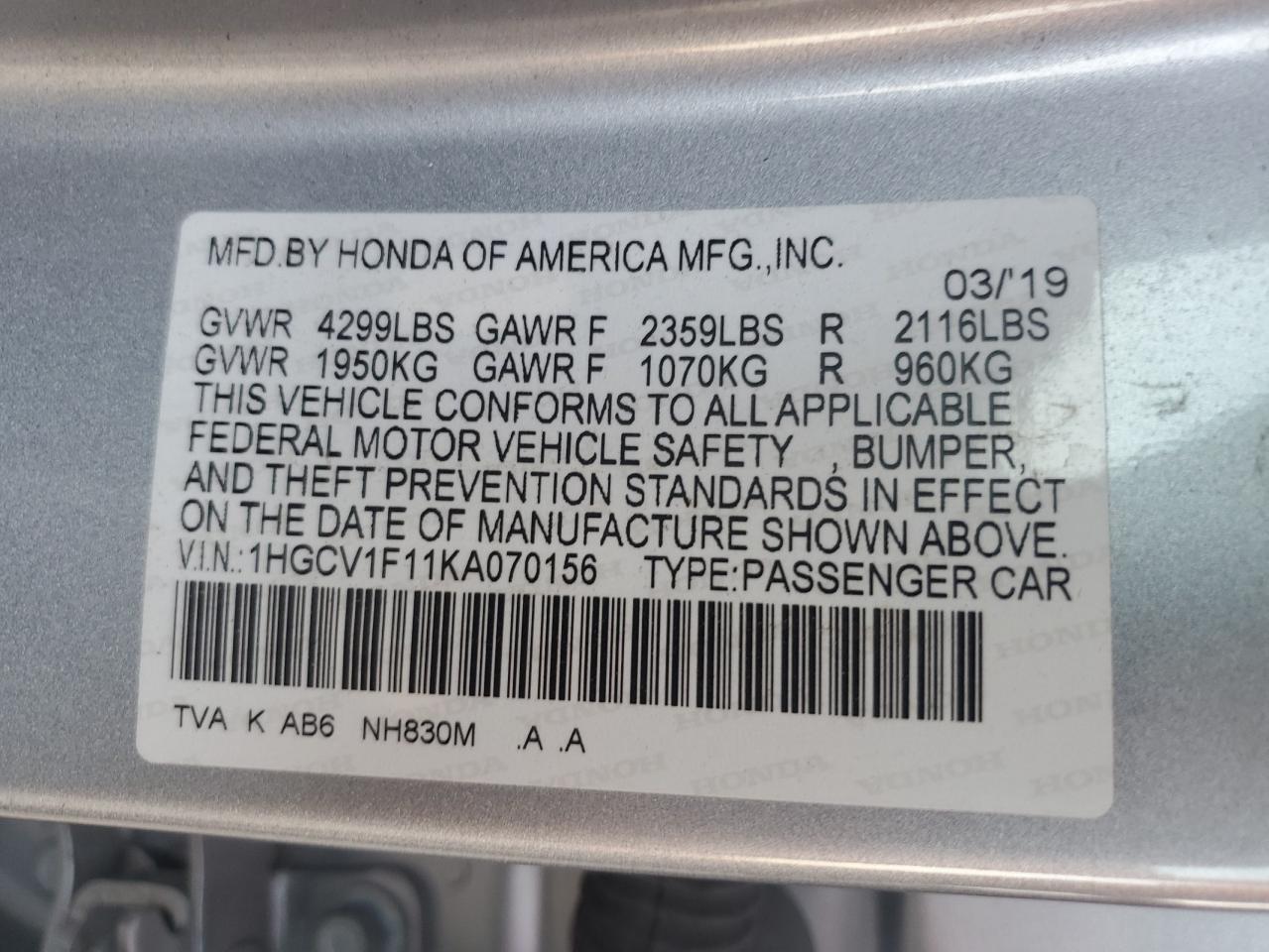 1HGCV1F11KA070156