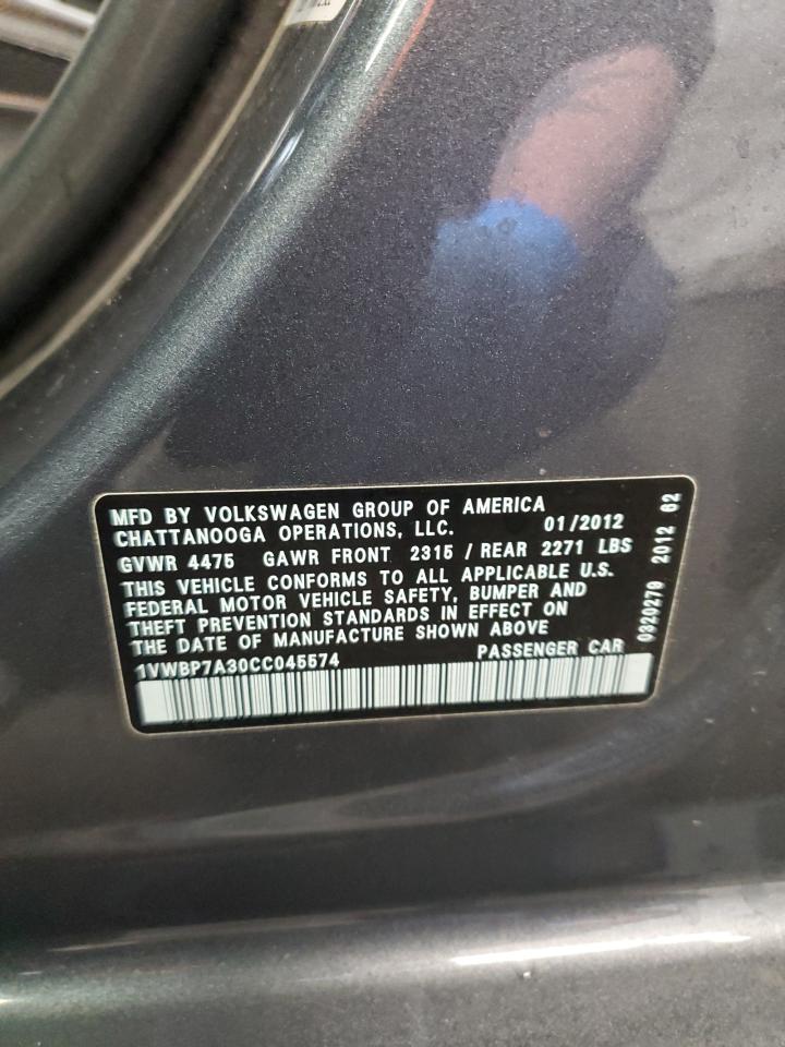 2012 VOLKSWAGEN PASSAT SE - 1VWBP7A30CC045574