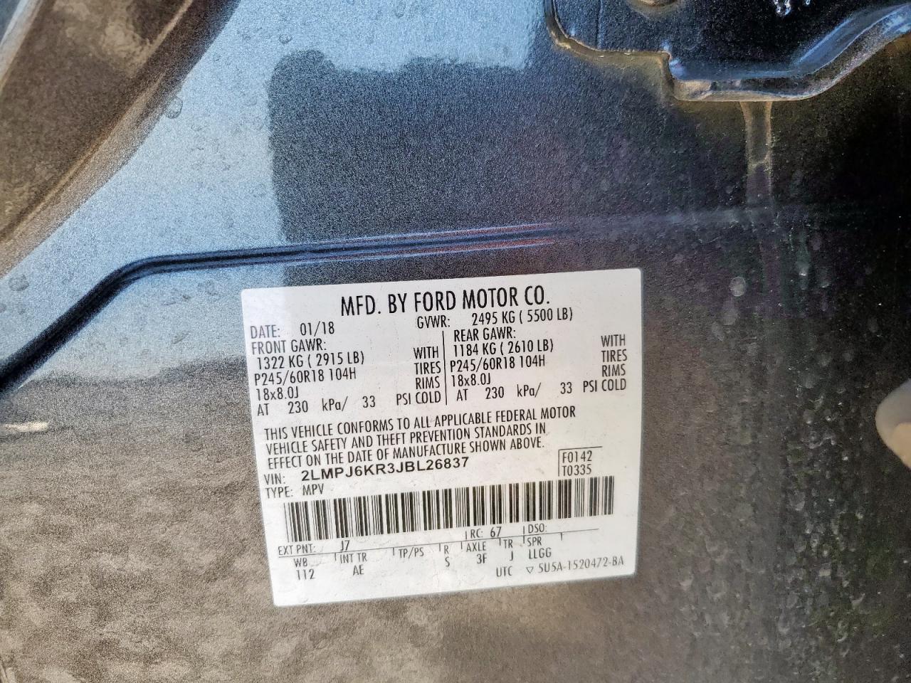 2018 LINCOLN MKX SELECT - 2LMPJ6KR3JBL26837