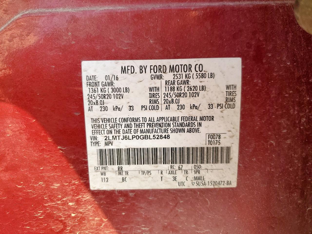 2016 LINCOLN MKX RESERV - 2LMTJ6LP0GBL52848