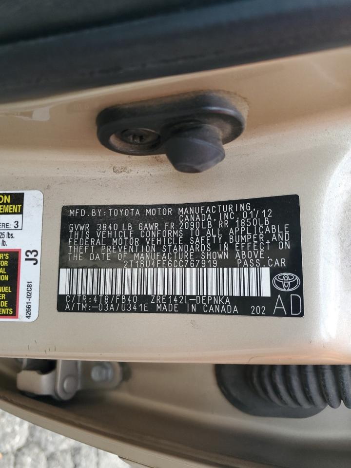 2012 TOYOTA COROLLA BA - 2T1BU4EE6CC767919