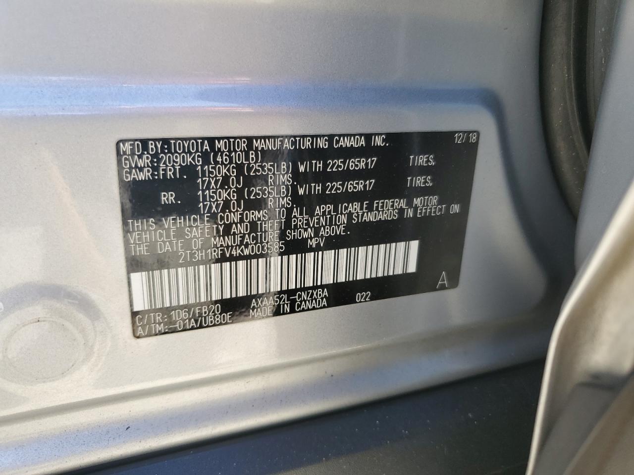 2T3H1RFV4KW003585