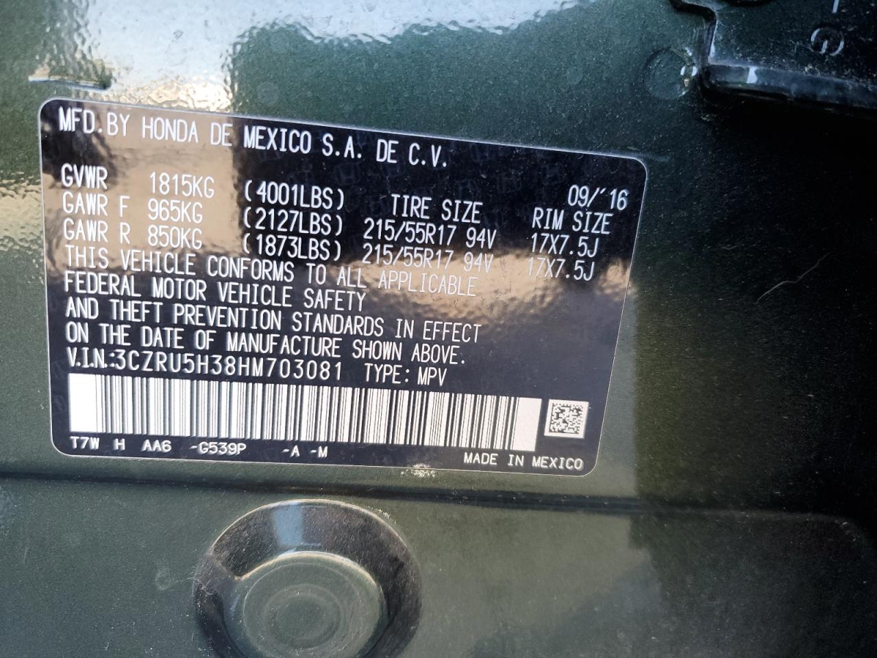 2017 HONDA HR-V LX - 3CZRU5H38HM703081