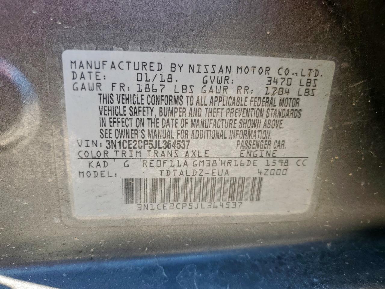 2018 NISSAN VERSA NOTE - 3N1CE2CP5JL364537