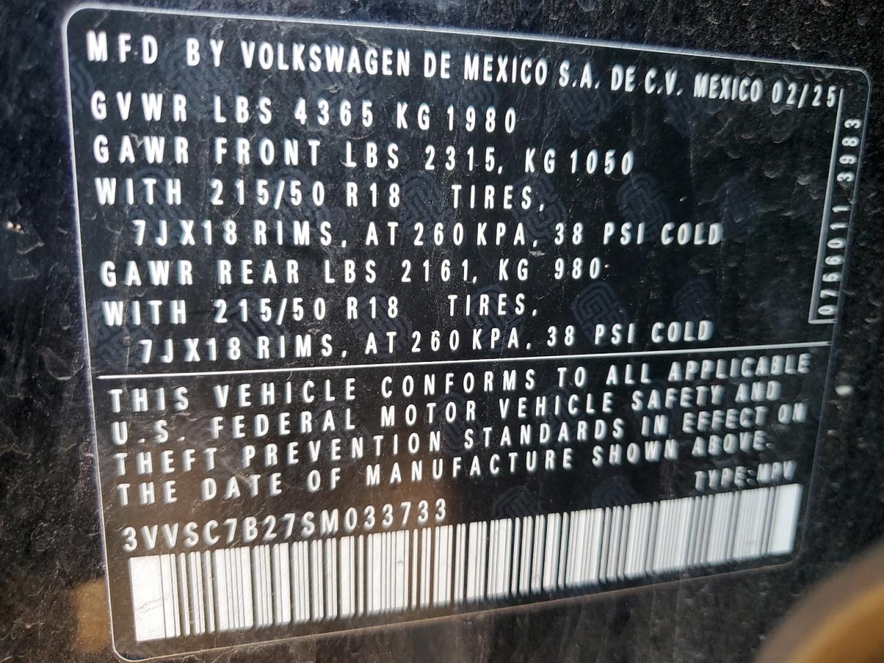 2025 VOLKSWAGEN TAOS SE - 3VVSC7B27SM033733