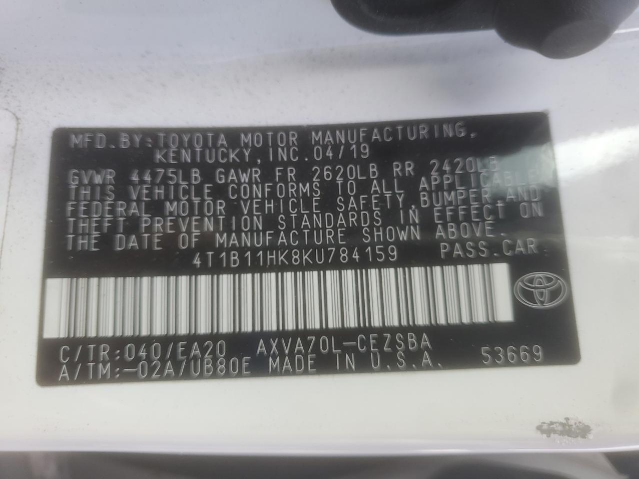 4T1B11HK8KU784159