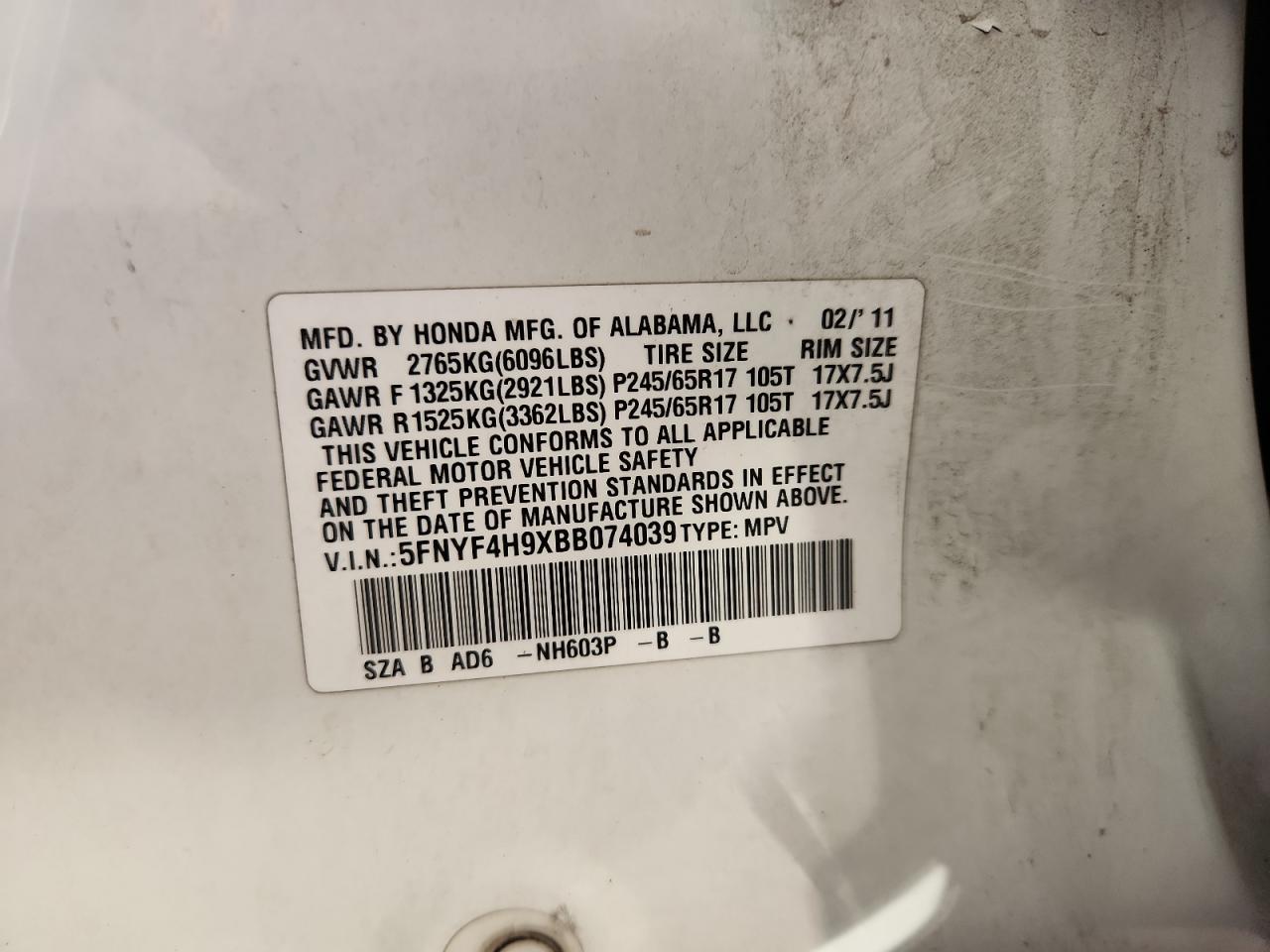 5FNYF4H9XBB074039