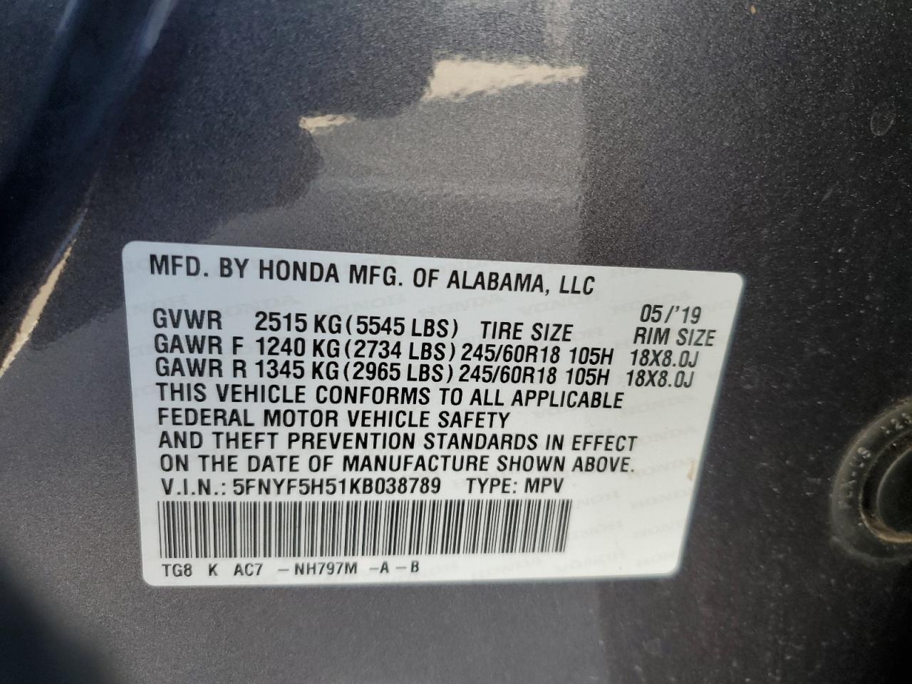5FNYF5H51KB038789