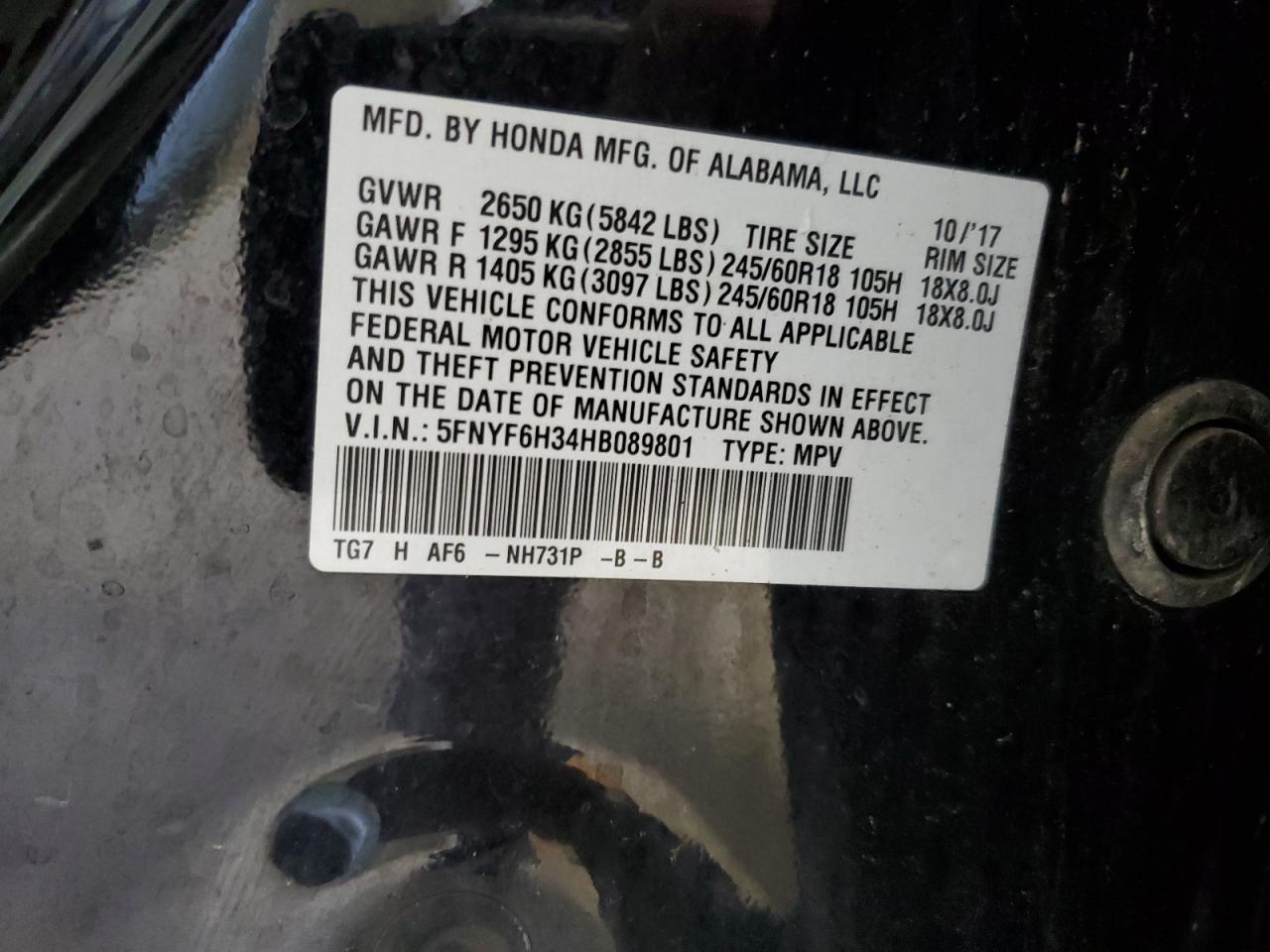 5FNYF6H34HB089801
