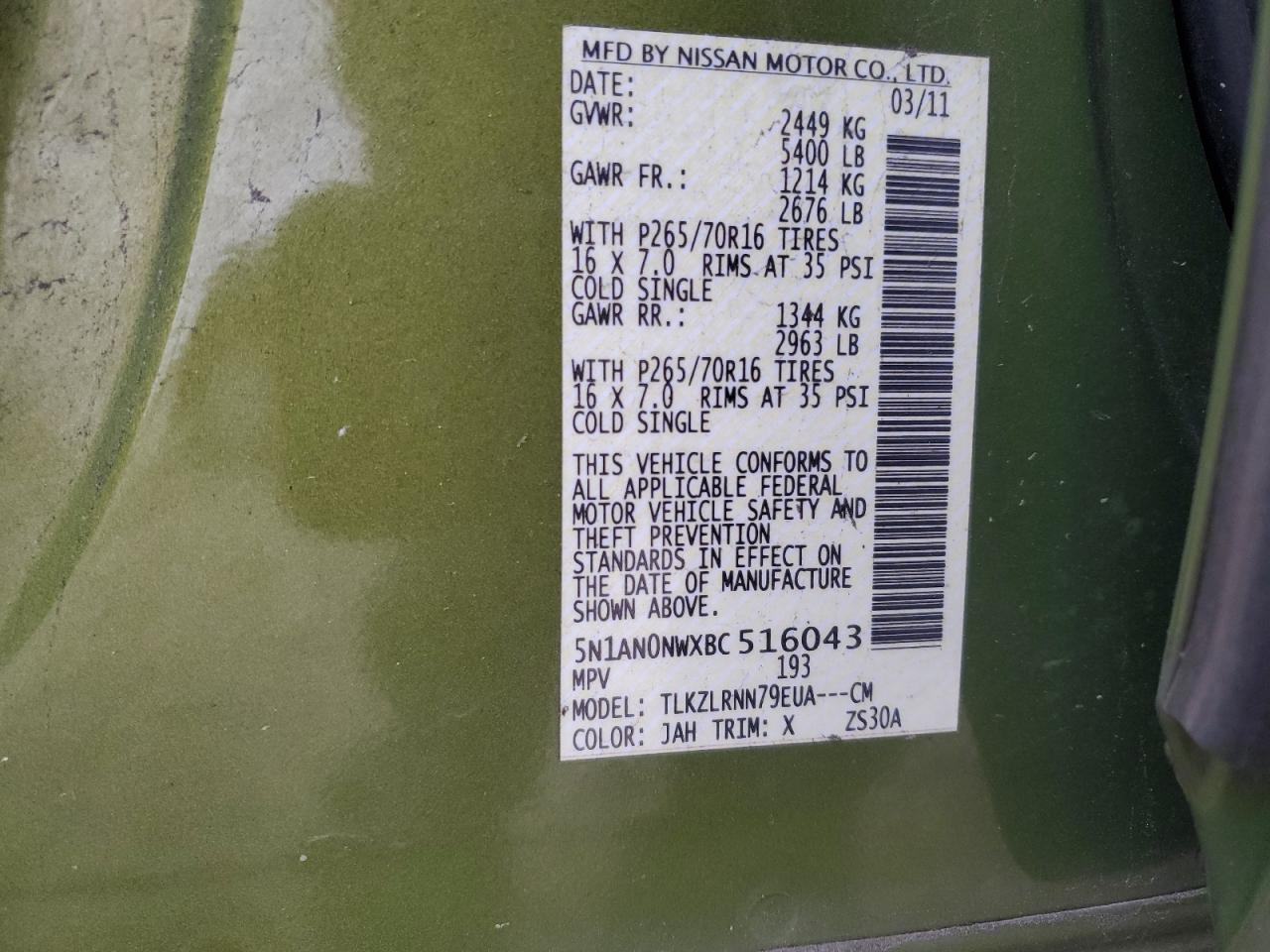 2011 NISSAN XTERRA OFF - 5N1AN0NWXBC516043
