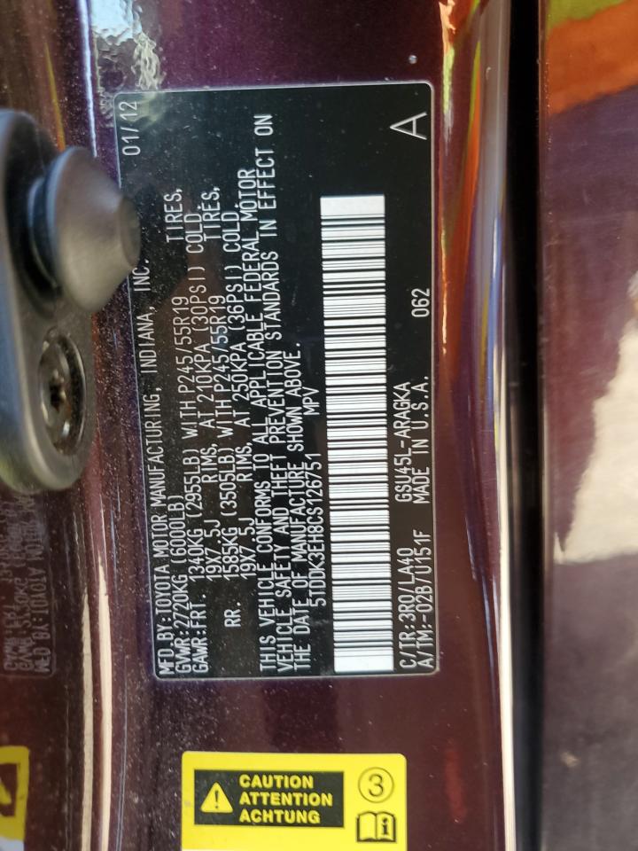 2012 TOYOTA HIGHLANDER - 5TDDK3EH8CS126751