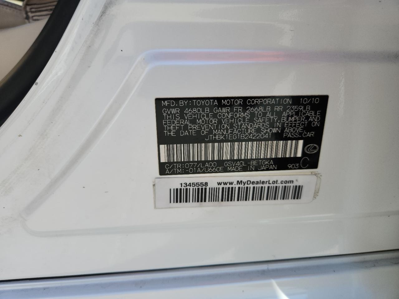 2011 LEXUS ES 350 - JTHBK1EG1B2422041